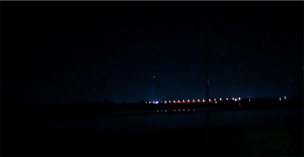 遠くを抜けるインターに、スラリと並んだほの赤い照明。
