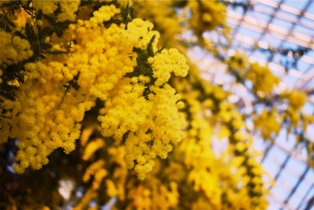 見上げるほどの木が一面に黄色である光景がいかに見事か。それを構成する小さな花のひとつひとつがいかに柔らかく、いかに愛らしいか。温室の入り口までただよう香りが、いかに瑞々しく青っぽく春らしいか。